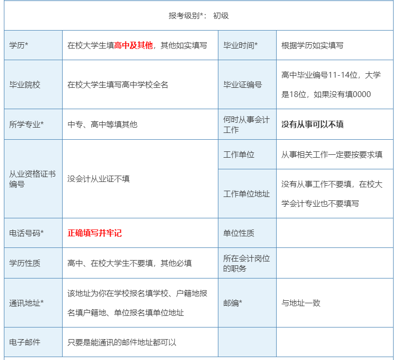 下面是小编整理了初级会计师报名信息填写规范详细说明,以便考生一次报名成功!