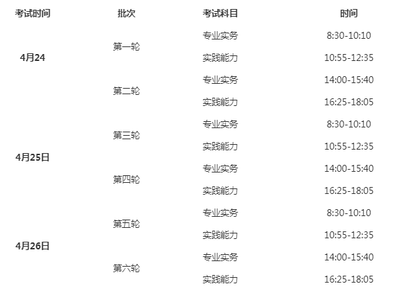 吉林2021年护士执业资格考试时间定于4月24、25、26日举行。每半天为一个轮次,各地根据报名人数、机器数合理选择考试的轮次。安排如下: