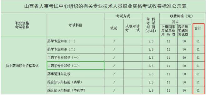 2021年07月27日 来源:来学网 山西人事考试网发布看有关专业技术人员职业资格考试收费标准的公告,其中2021年执业药师收费标准为61元/科,具体内容如下: