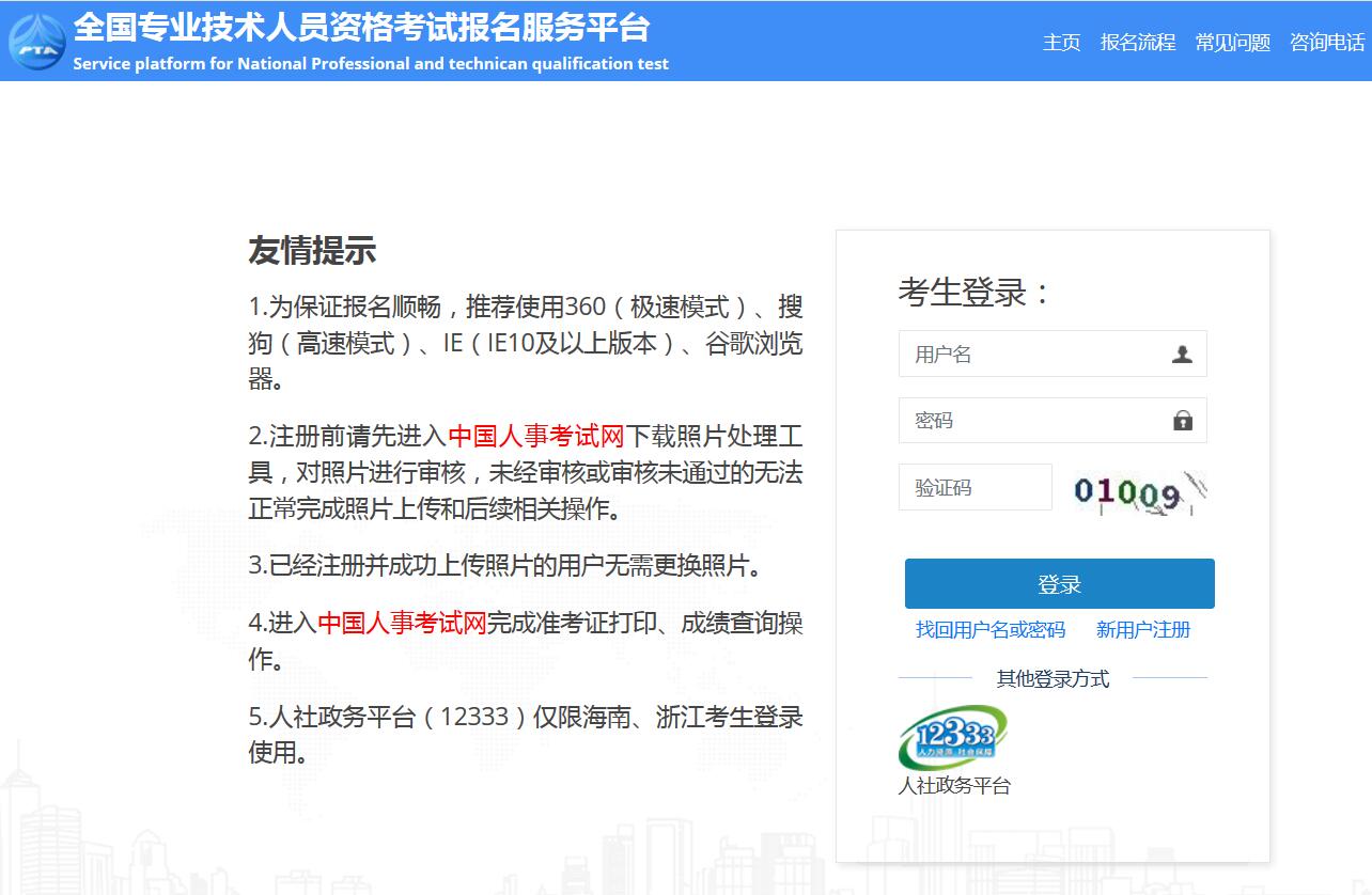 登录网上报名系统,选择所报的专业技术人员资格考试名称,进入网上报名界面。选择省(市)后,提示栏中将显示报考人员姓名、报考考试名称、报考地区、缴费方式和咨询电话。