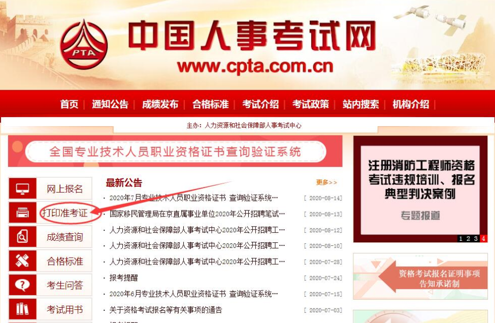 准考证打印网站为中国人事考试网