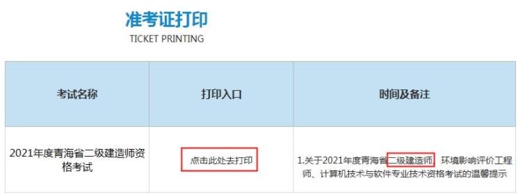 青海2022二级建造师准考证打印入口:青海人事考试信息网