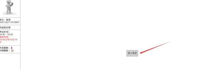 进入答题页面,在右侧主显示区显示试题信息,左侧主要显示本次考试的基本信息、考试时间倒计时提醒、考生信息以及试题答题提示信息,在试题显示区下方为操作区和试题目录区域,点击不同按钮完成不同的操作,点击试题目录会在试题显示区显示点击试题的题干和选项。