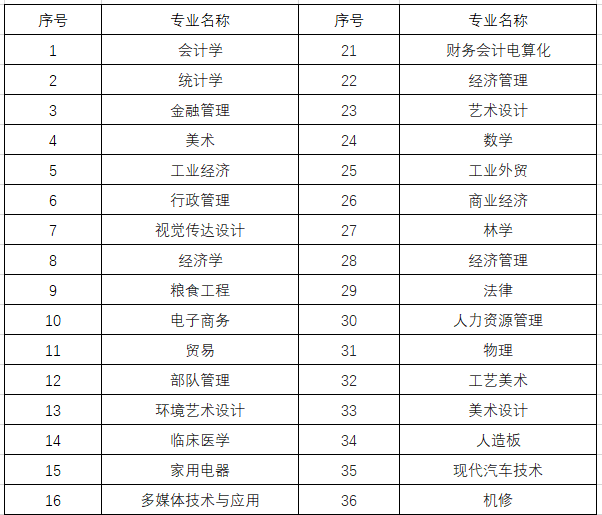 2. 专业对照表上没有但可以报考的专业