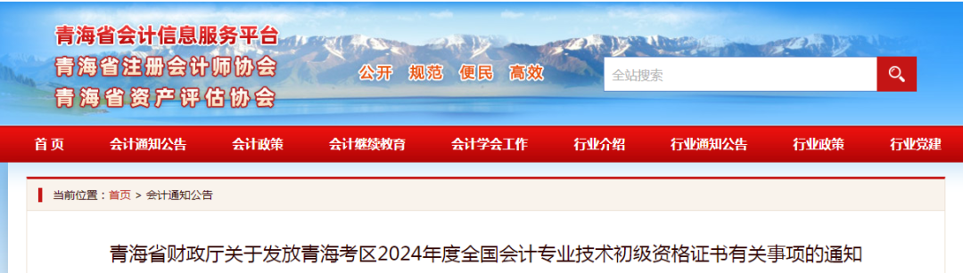 日前,青海省财政厅关于发放青海考区2024年度全国会计专业技术初级资格证书有关事项的通知中,明确指出: