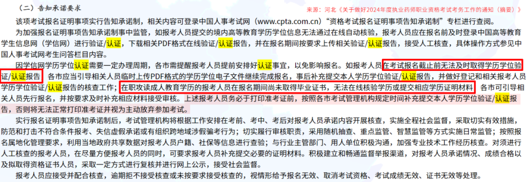 河北执业药师报名通知明确:报名期间未提交本人学历学位验证/认证报告的,务必在打印准考证前,按照各市要求补交,否则无法正常打印准考证并视为主动放弃参加考试。建议相关考生在近期多关注短信、电话等通知。