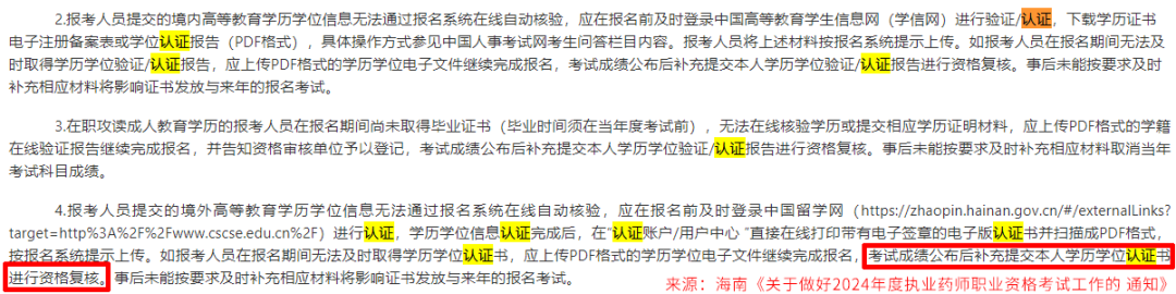 执业药师考试报名期间未按规定上传本人学历学位验证/认证报告的,(合格考生)需要在考后资格审核时按要求补交。