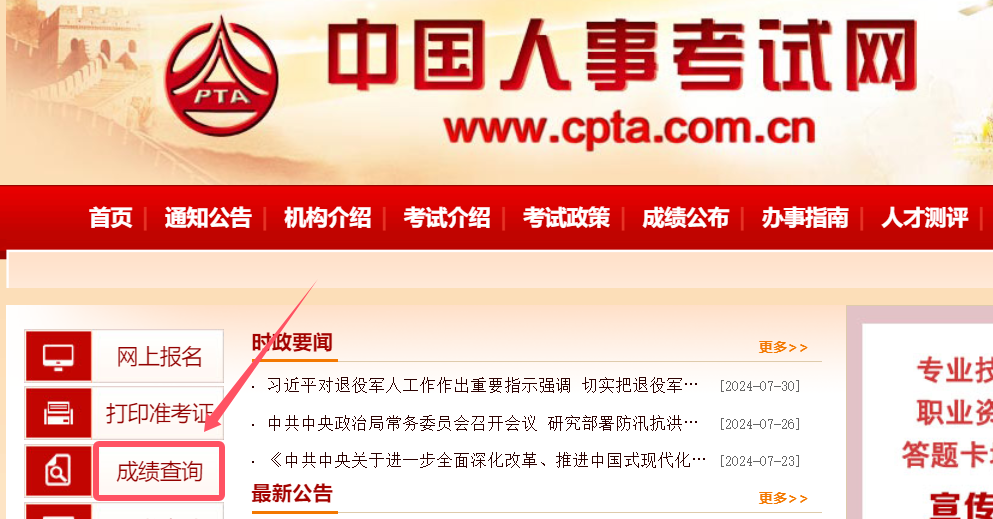 在进行成绩查询时,部分考生成绩会显示为“-1”、“-2”、“-4”,其中-1代表缺考,-2代表违纪,-4代表成绩无效。