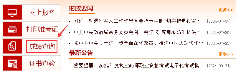待一建考试成绩查询入口开通后,同学们登录中国人事考试网(报名网站),点击左侧“成绩查询”,输入用户名、密码、验证码即可登录查询自己的考试成绩。