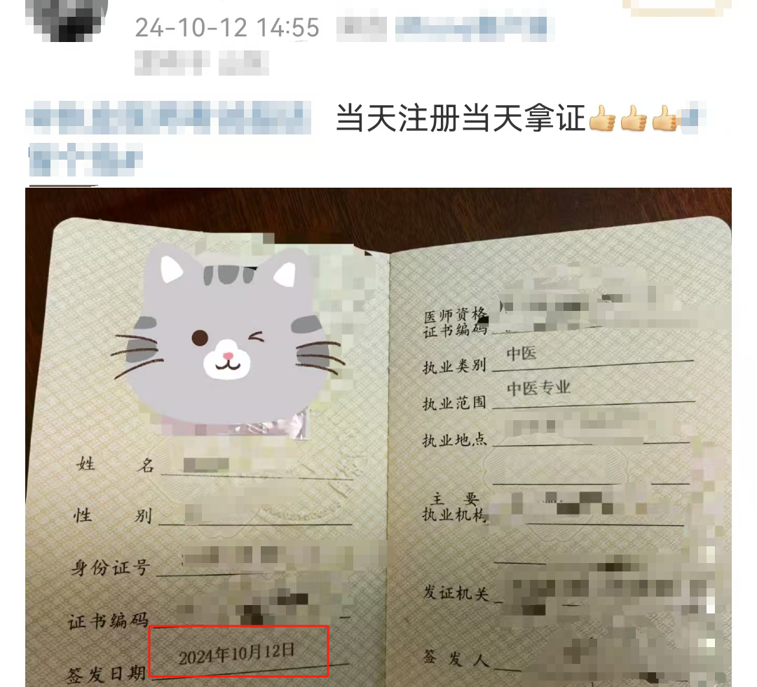 2024年10月17日 来源:来学网2024年医师电子化注册已开始!今日很多同学反馈:领到医师执业证了。恭喜拿到证书的同学!还没开始注册的同学,抓紧时间了,你的执业证在向你招手。