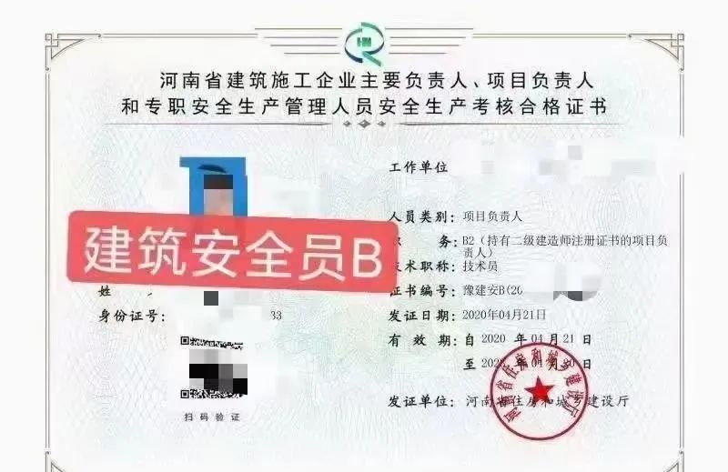 2.担任企业项目经理,参与工程项目施工管理,必须要具备安 全员B证。