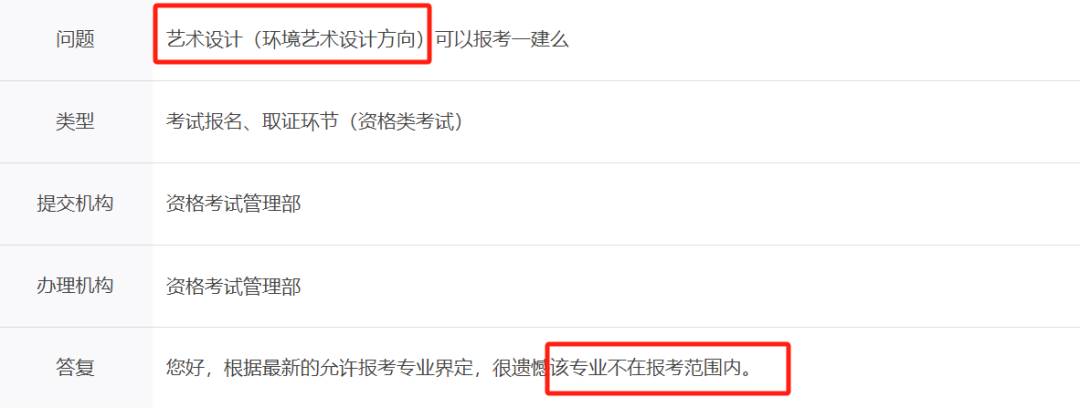问题:艺术设计(环境艺术设计方向)可以报考一建么