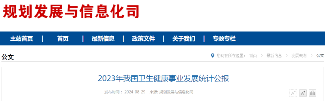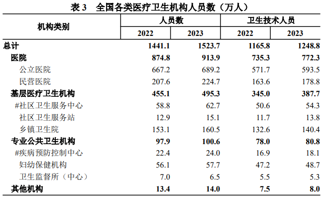 国家卫生健康委发布《2023年我国卫生健康事业发展统计公报》(以下简称《公报》)。