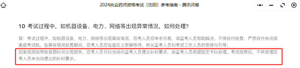 执业药师今年第 一次机考,有很多考生也是机考小白,这时候就会有疑问:机考出现因客观原因导致答题时间出现损失的问题怎么办?明明才开考30分钟系统显示60分钟?突然死机?其实这些问题有2地已经做出回复:可申请补时,快来看一下怎么回事↓