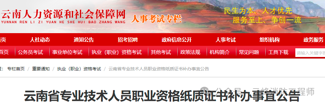 【通知】云南一级注册消防工程师职业资格纸质证书补办事宜公告