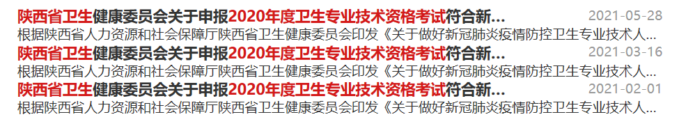 2021年,陕西省卫健委在11月及12月分2批对2021年度卫生专业技术资格考试符合新冠疫情一线考生办理省级资格证书人员进行了公示。