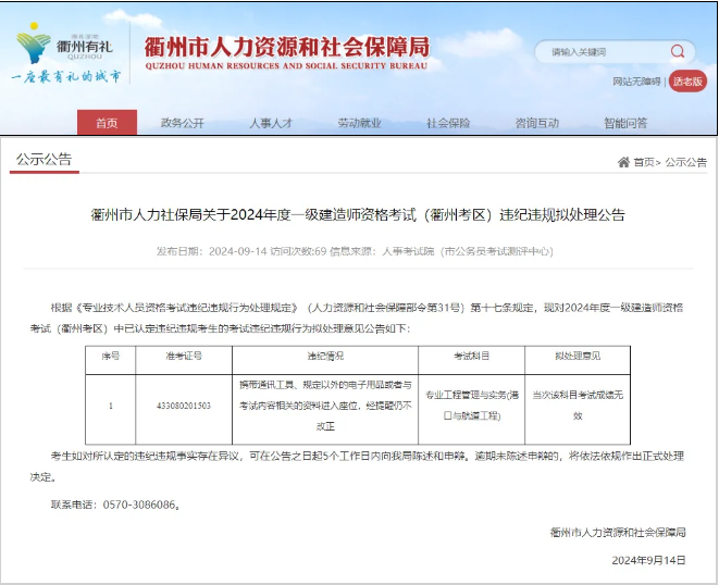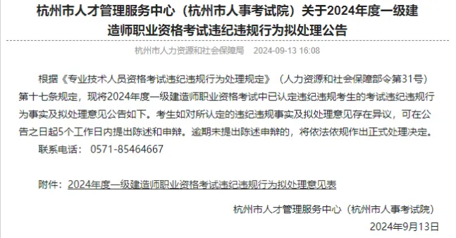 两个月前,浙江杭州、衢州等地发布一建考试违纪违规通报,有26人被查出存在违纪违规行为。