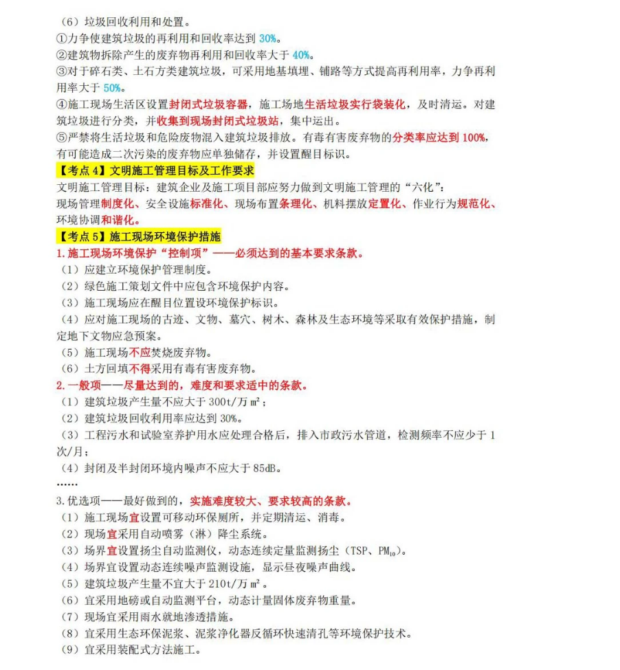 一建项目管理考点笔记:绿色建造及施工现场环境管理