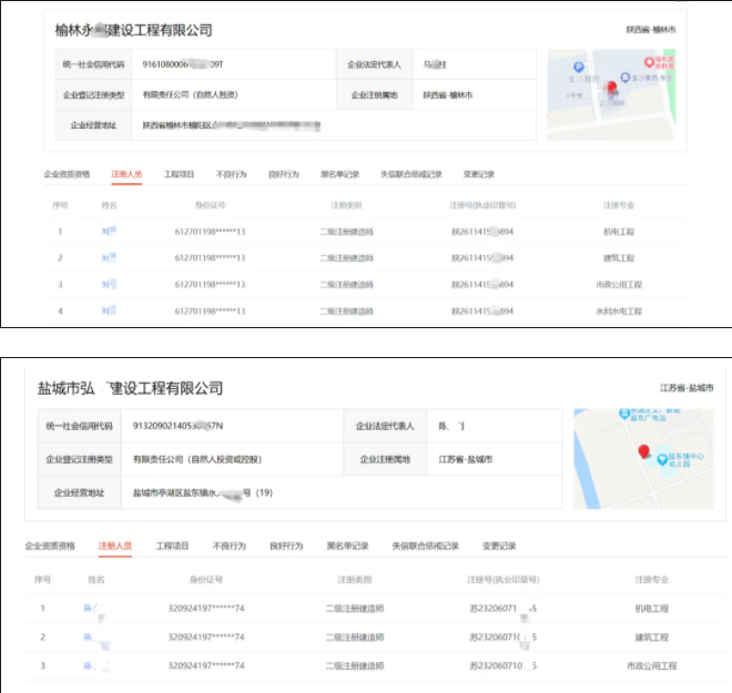 小编随手在网上找了一些企业,可以看到下图的这几位建造师人才持有多本二建、一建证书,且都是注册状态。