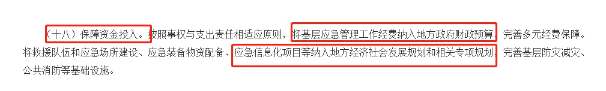 3、保障基层应急管理资金投入,资金纳入地方财政预算