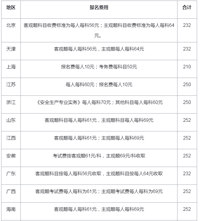 2025年注册安全工程师报名费用暂未公布,不过报名费用不会频繁变化,参考往年情况来看,注册安全工程师考试报名费用基本在210元~372元之间,各地收费标准有所不同,由当地人考中心划定,以下整理了各省中级注册安全工程师考试报名费用,供大家参考: