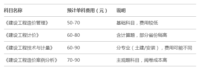 一级造价师考试共4科,各省单科费用通常在50-90元之间,全科报考总费用约200-400元。具体分项预测: