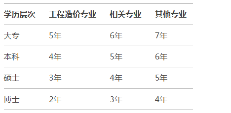 具有经专业评估(认证)的工程管理、工程造价专业学士学位,且从事工程造价业务满4年