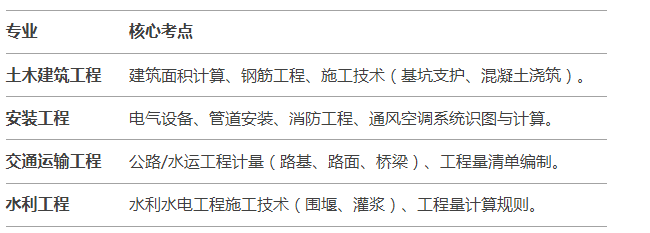 近年难度提升:部分题目偏向现场实操,如土建考钢筋平法、安装考管线计算。