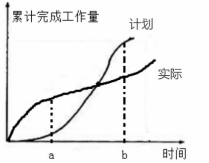 某工作实施过程中的S型曲线如下图所示,图中a和b两点的进度偏差状态是()。