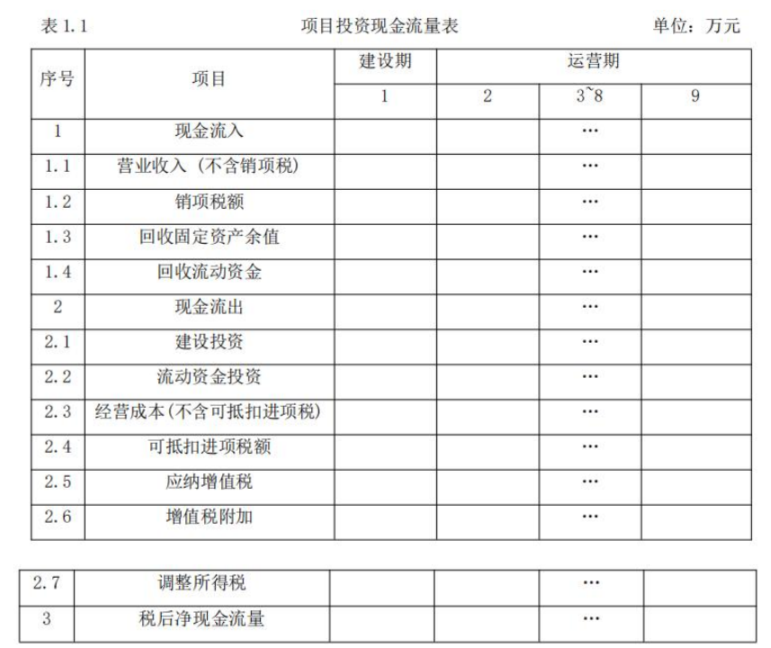 1.若企业产品不含税销售单价定为3500元/件,分别计算项目运营期第1年、第8年的应纳增值税,第1年和第8年的调整所得税,并编制拟建项目投资现金流量表1-1。