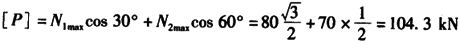,取其中的最小值作为结构的许可荷载,于是[P]=92.4kN,所以应选答案(A)。