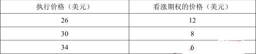 假定某一股票的现价为32美元,如果某投资者认为这以后的3个月中股票价格不可能发生重大